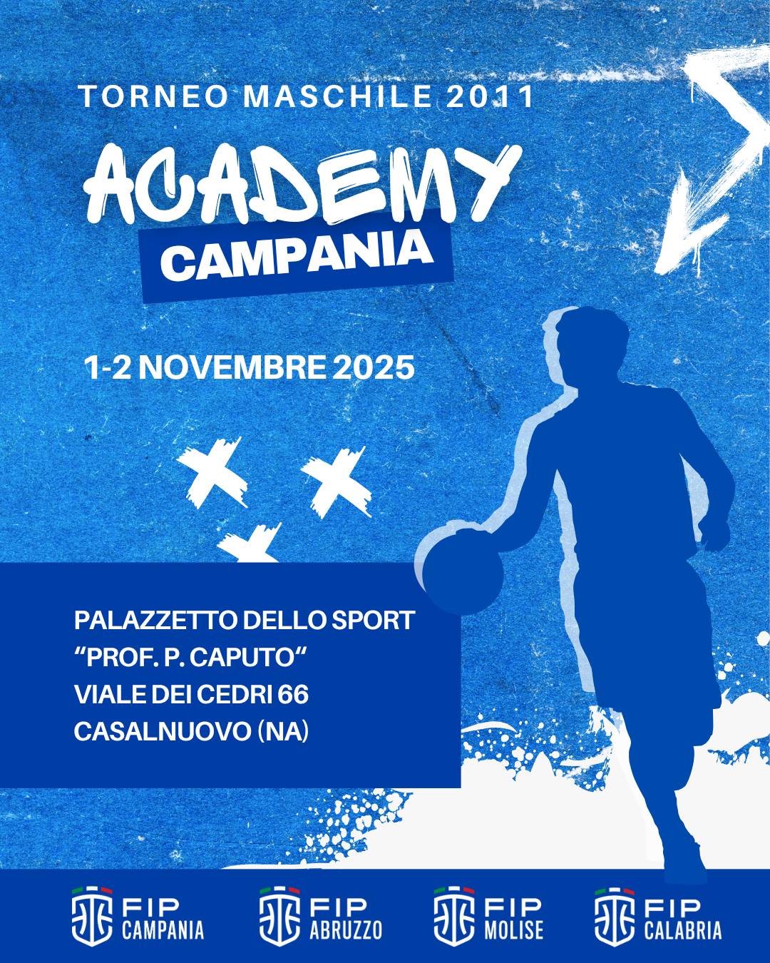 Sabato 1 e domenica 2 novembre il Palazzetto “Prof. P. Caputo” di Casalnuovo ospita un evento imperdibile organizzato da FIP Campania con la partecipazione dei CR di Abruzzo, Calabria e Molise. Si tratta del torneo “Academy Campania” dedicato ai talenti classe 2011 e che vedrà sfidarsi le selezioni delle 4 regioni.
