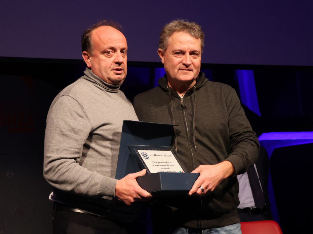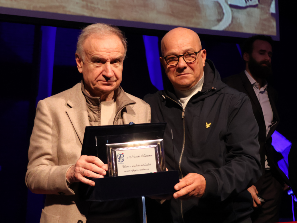 La mattinata ha vissuto due momenti: il primo ha visto un confronto-dibattito con protagonisti gli illustri ospiti azzurri, che hanno dialogato insieme al Presidente Caliendo. Nella seconda parte, c’è stata la consegna dei riconoscimenti per meriti sportivi a tre figure di rilievo del basket campano. Sono stati premiati Catello Porfido, dirigente sportivo casertano, da oltre 50 anni nel mondo della pallacanestro, Mariano Gentile, allenatore e Responsabile Tecnico Territoriale di FIP Campania, e Fortunato Starace, ex cestista dell’Aquila Partenope ed esempio di riscatto sociale compiuto attraverso il basket. La bellissima storia di Starace è stata rivissuta stamani grazie alla proiezione del mini-documentario realizzato dal quotidiano “Il Mattino”, a cura di Stefano Prestisimone e Walter Medolla, che ha ricostruito il percorso di vita e sportivo di Starace. Al termine del video, l’intera squadra dell’Aquila Partenope dell’epoca è stata chiamata sul palco per riabbracciare Starace e celebrare il riconoscimento. Tra loro anche il Direttore de “Il Mattino”, Vincenzo Di Vincenzo, storico compagno di squadra di Starace, che ha ricordato le belle emozioni di quella esperienza, sia sotto il profilo umano che sportivo.