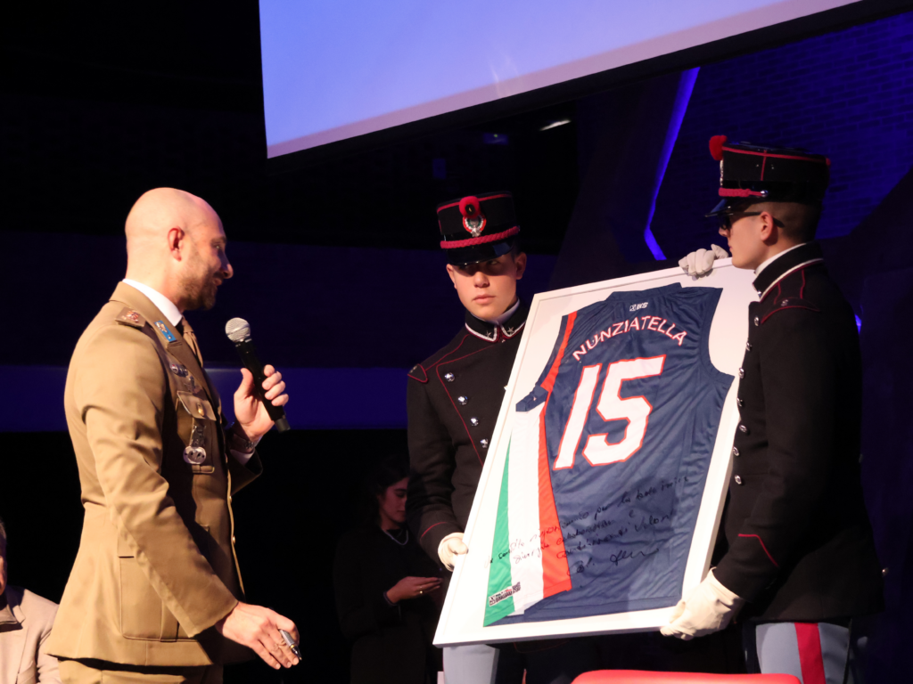 A concludere la manifestazione è stato il Comandante della Scuola Militare “Nunziatella” di Napoli, Alberto Valent, che nel suo intervento ha ricordato l’importante sinergia tra FIP Campania e Nunziatella, la cui squadra di basket utilizza le strutture sportive della città grazie a un accordo con FIP Campania. Il Comandante Valent ha consegnato al Presidente di FIP Campania, Antonio Caliendo, una canottiera della squadra della Nunziatella, con apposita dedica, e lo spadino, simbolo storico degli allievi della Scuola, al Presidente FIP Nazionale, Gianni Petrucci.